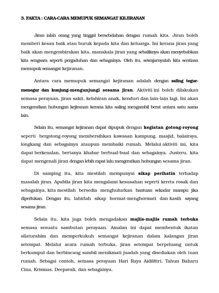 Contoh Karangan Tentang Cara-cara Memupuk Semangat Kejiranan Tingkatan 4